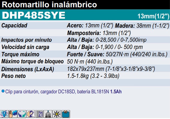 ROTOMARTILLO INALAMBRICO 12 V 1/2" MAKITA DHP485SYE
