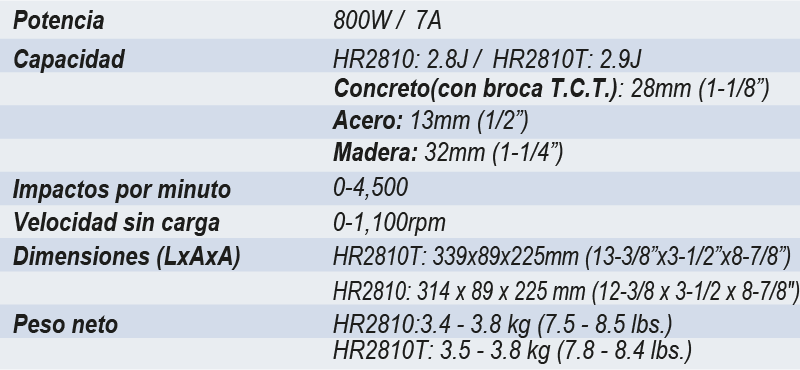 ROTOMARTILLO SDS PLUS 1-1/8" 800 W MAKITA HR2810